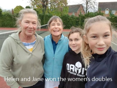 Brenton won the Men’s Singles at a canter. Helen and Jane won the Women’s Doubles. The Men’s Doubles plate was won by Ashley and David beating John G and Adriaan in a tight final.