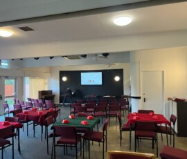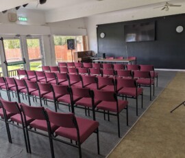 The upstairs meeting room will accommodate up to 30 people. Tables and chairs are available, and these can be arranged in a layout to suit the function. The only access is by stairs.